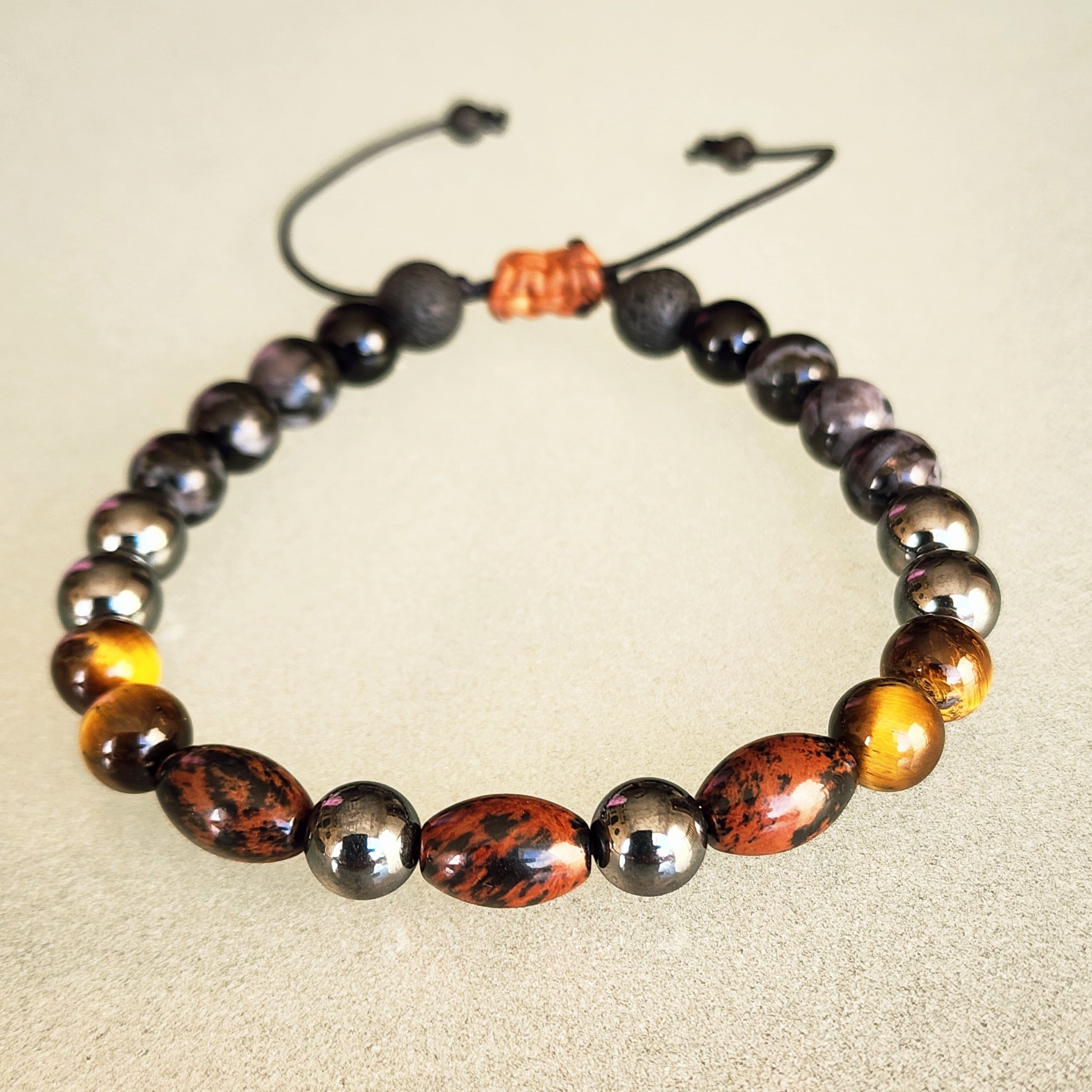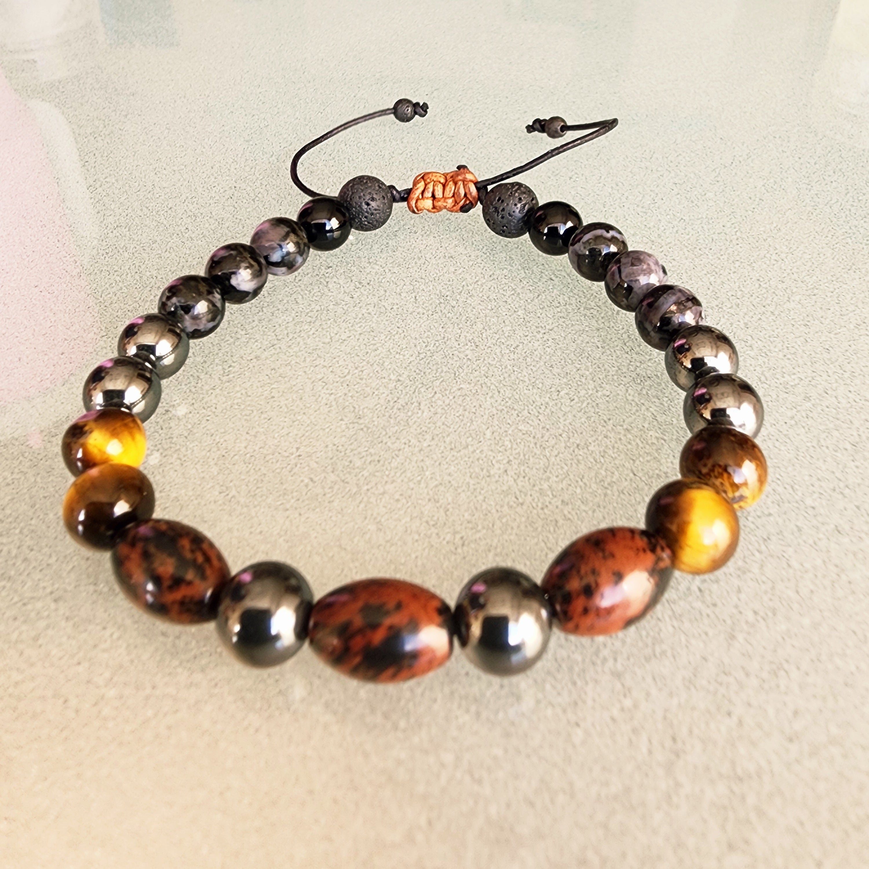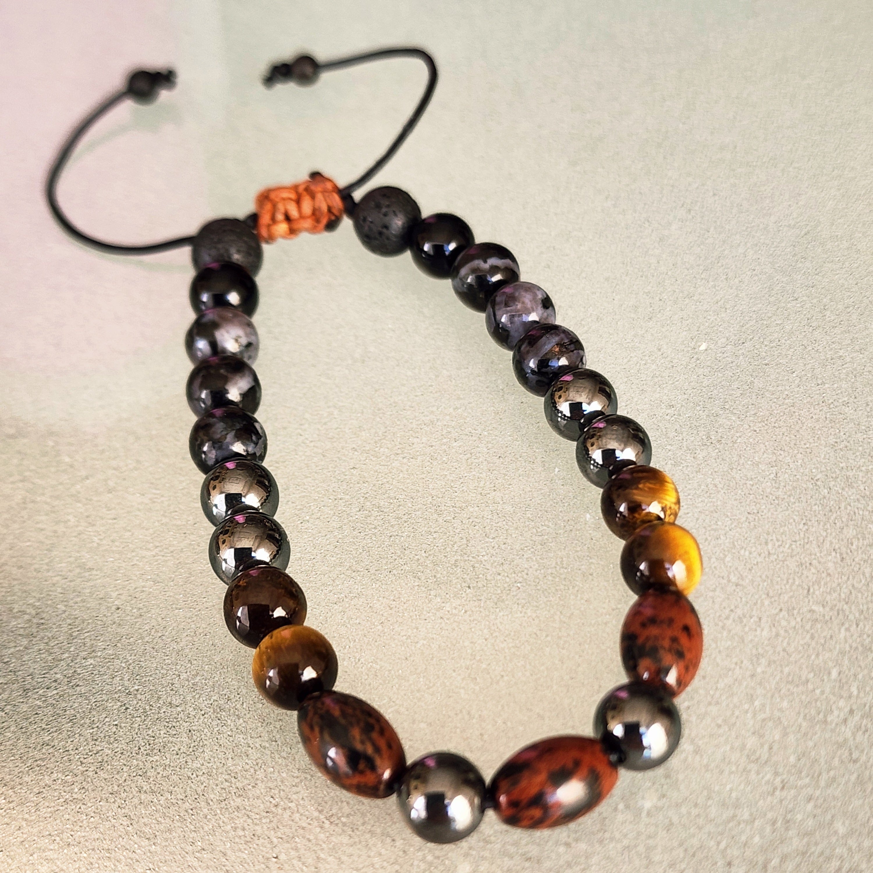 To clear and recharge the bracelet’s energy, rinse it gently in lukewarm water or smudge with sage. You can also place it in moonlight or on a selenite plate. Each time you put it on, set an intention or affirmation such as: “I am grounded. I am protected. I am aligned with my purpose.”